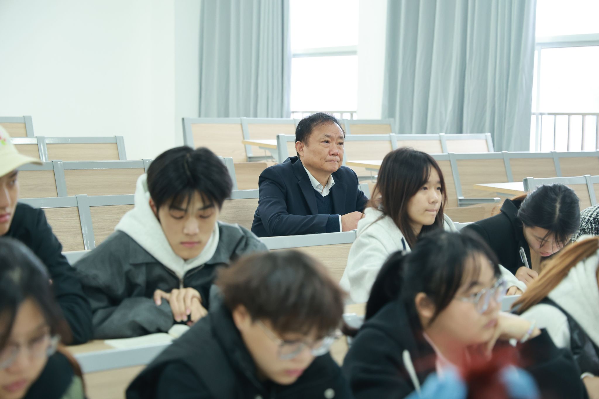 10月24日上午,我校形势与政策课程教学活动再添亮点。我校执行校长吴勇军走进形势与政策课堂,随堂听取了马克思主义学院青年教师崔丹丹主讲的“形势与政策第四讲———阔步迈向农业强国”,近距离了解课程教学质量与学生学习状态,为我校思政课程教学质量提升把脉指导。教务处处长刘永录以及马克思主义学院院长刘琳娜陪同听课。