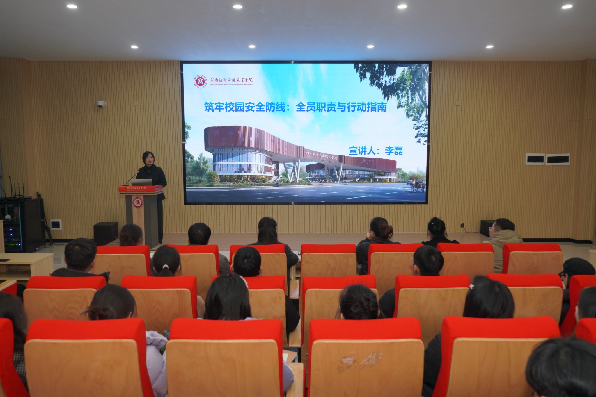 为深入贯彻落实全省教育系统安全工作视频会议精神,进一步压实校园安全管理责任,全面提升教职工安全防范意识与应急处置能力,12月18日下午,我校在学术报告厅召开岁末年初校园安全工作专题培训会。分管校领导、各职能部门负责人、全体辅导员及教职员工代表参加培训。会议由副校长刘文娟主持。