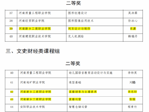 本次大赛中,河南新乡工商职业学院教师团队在三个课程组别中实现突破、斩获佳绩: