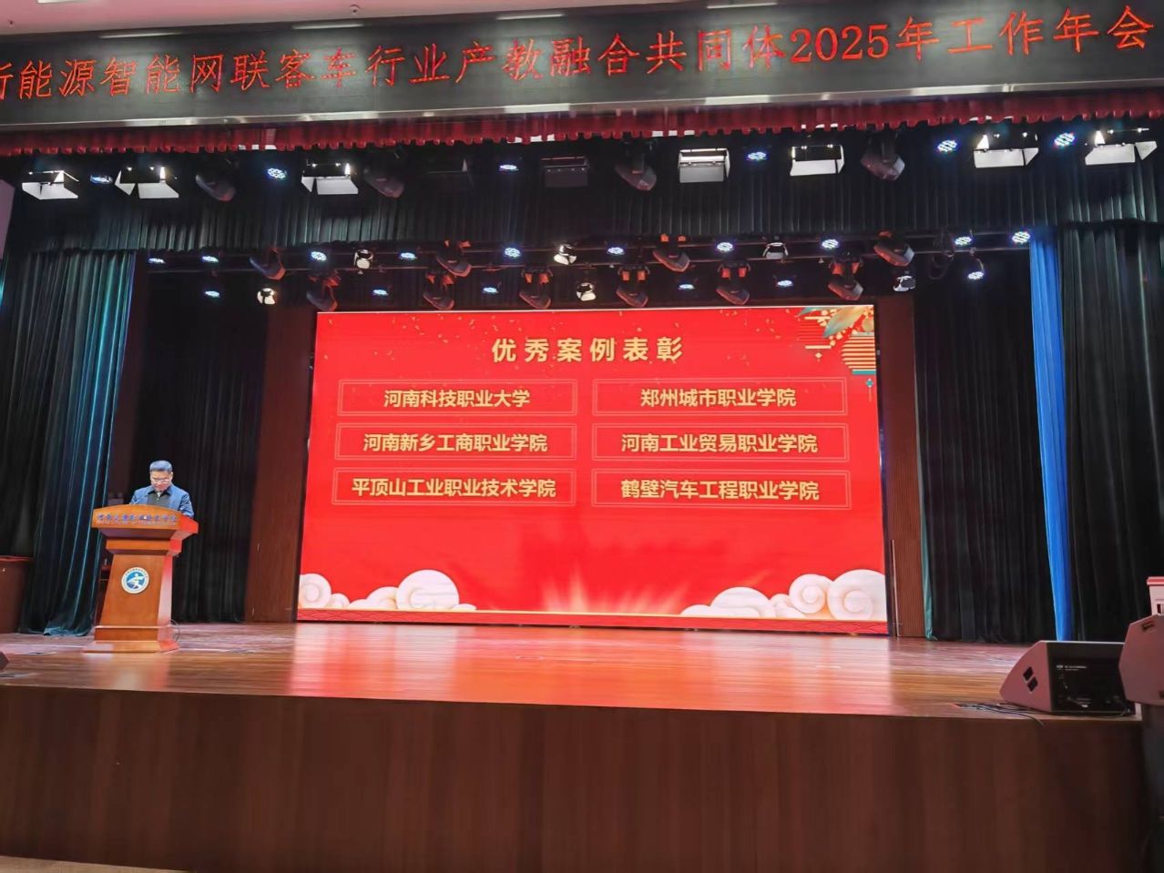 1月17日,新能源智能网联客车行业产教融合共同体2025年工作会议在河南交通职业技术学院航海路校区隆重举行。河南新乡工商职业学院获授“副理事长单位”,并荣获“年度优秀案例”表彰,标志着学校在新能源智能网联汽车领域的产教融合工作实现重要突破。